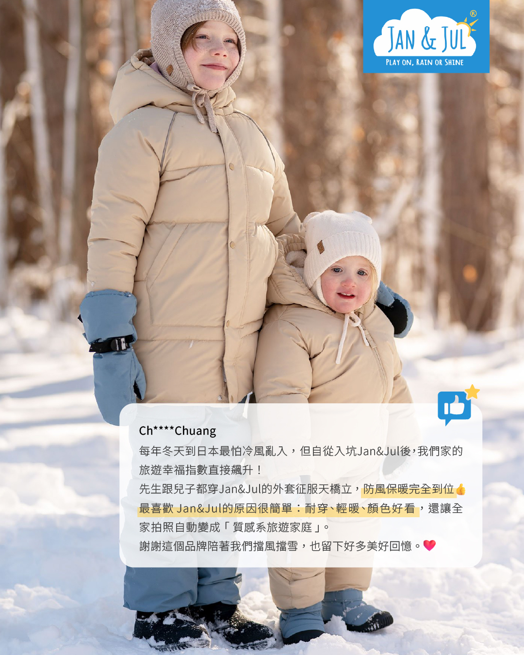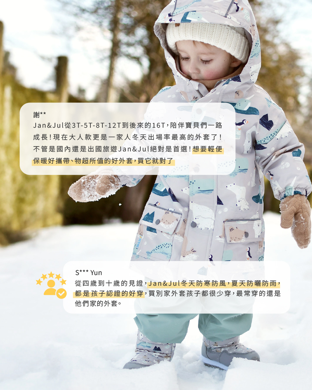 重點是小朋友穿上「不臃腫、好活動」的外套,選 Jan&Jul 準沒錯👍