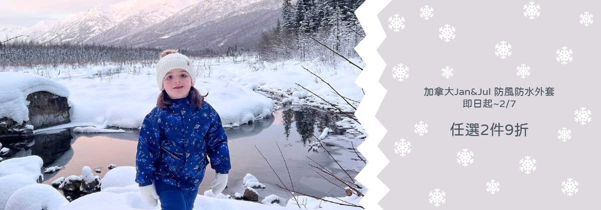 即日起~2/7,活動期間購買加拿大Jan & Jul 防風防水外套任選2件即享9折優惠。