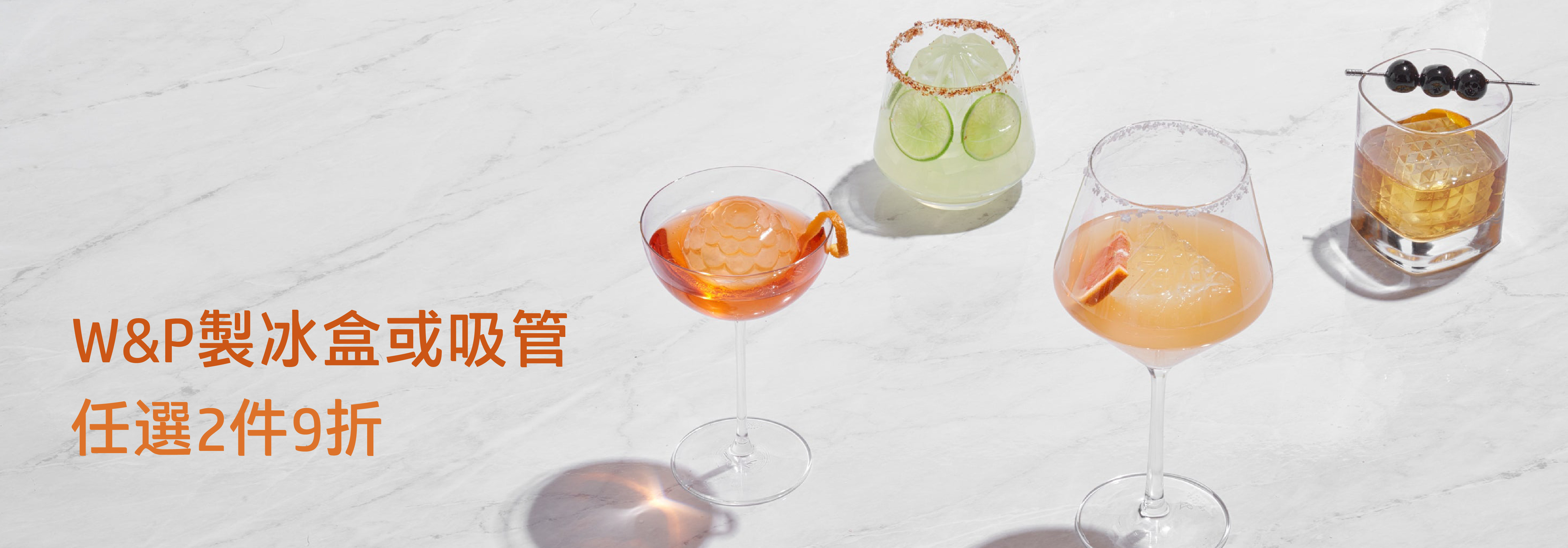 即日起~6/8 23:59 W&P指定款製冰盒及吸管,任選2件9折優惠!