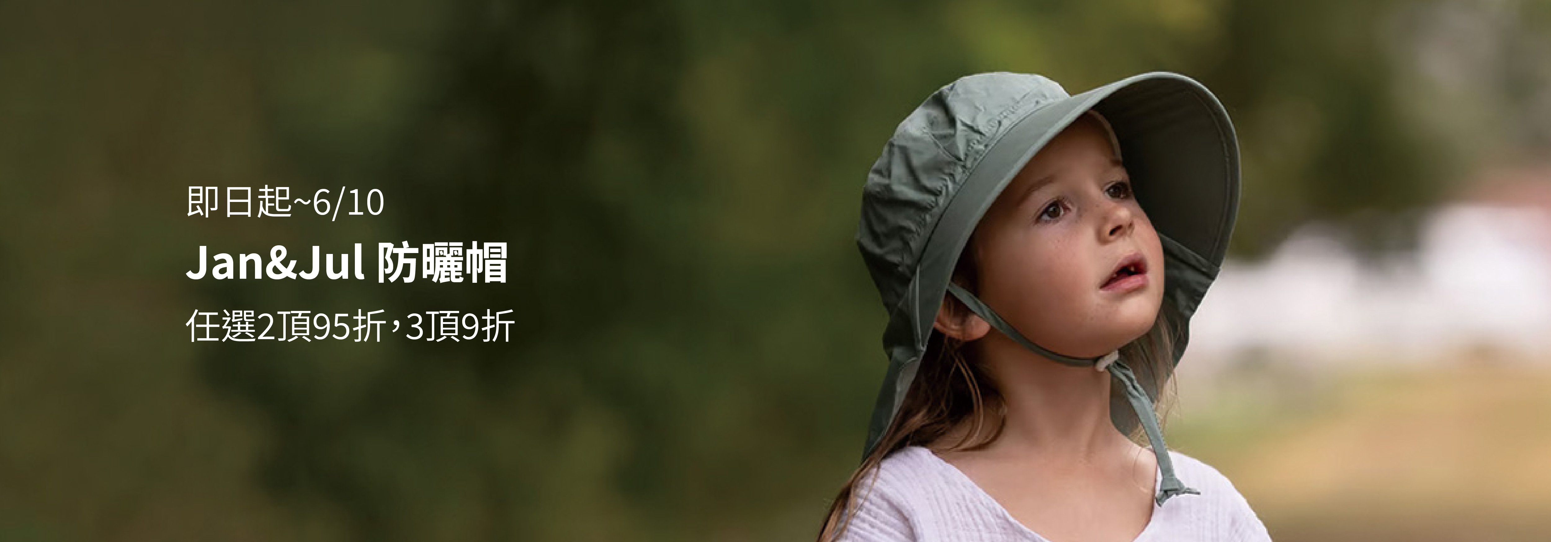 即日起~6/10 23:59 Jan&Jul 防曬帽任選2頂95折,3頂9折