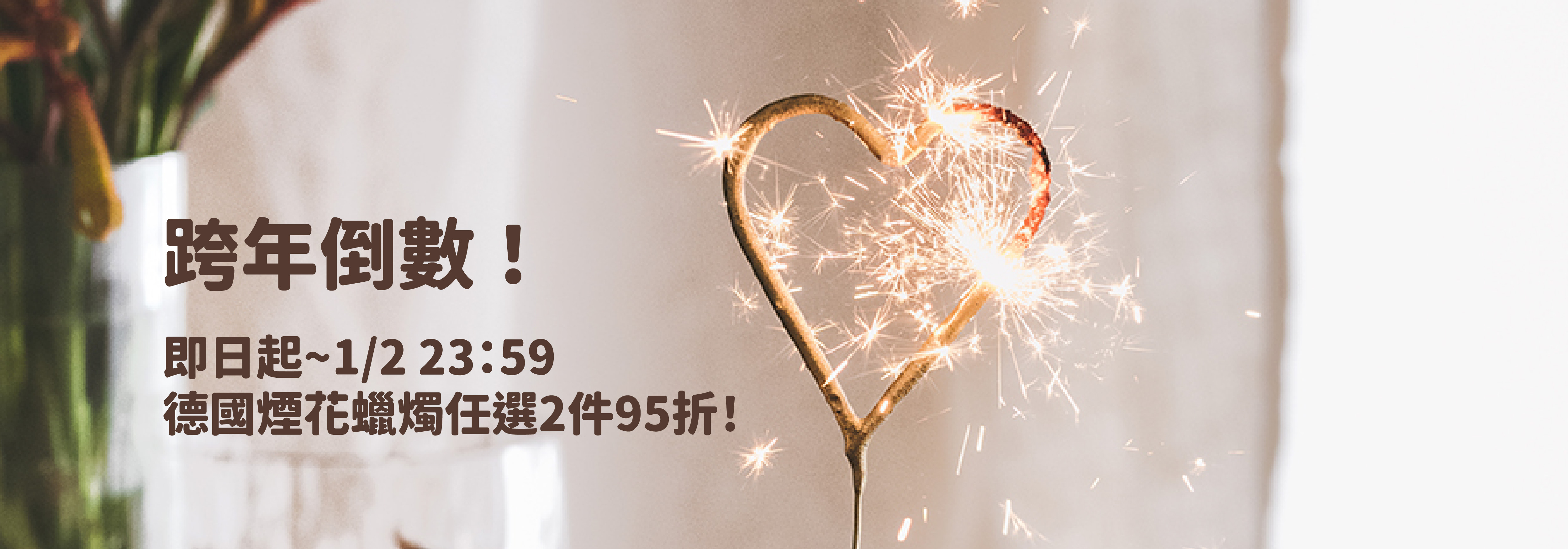 跨年倒數!即日起~1/2 23:59,德國煙花蠟燭任選2件95折!