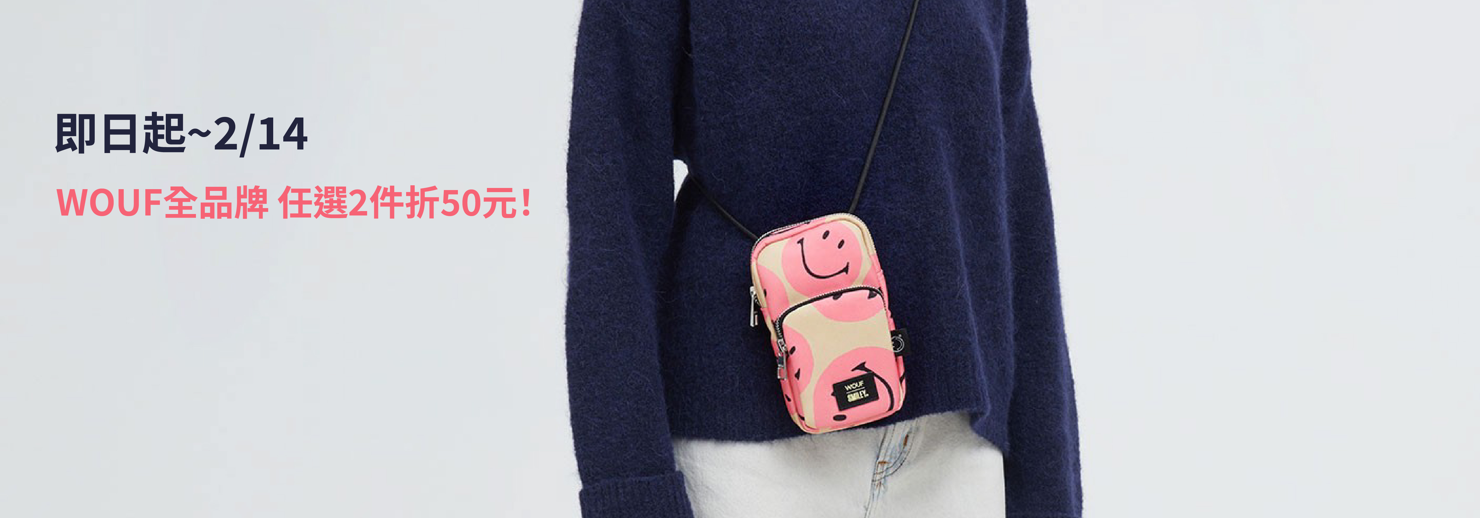美包不嫌多,找朋友、隊友一起換新包包!即日起~2/14 23:59 WOUF全品牌任選2件折50元!