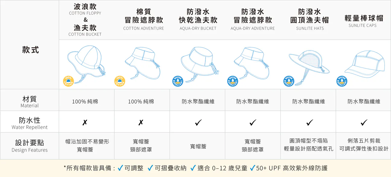 開發出能保護孩子們免受有害紫外線侵害的防曬帽,防風防水服飾,