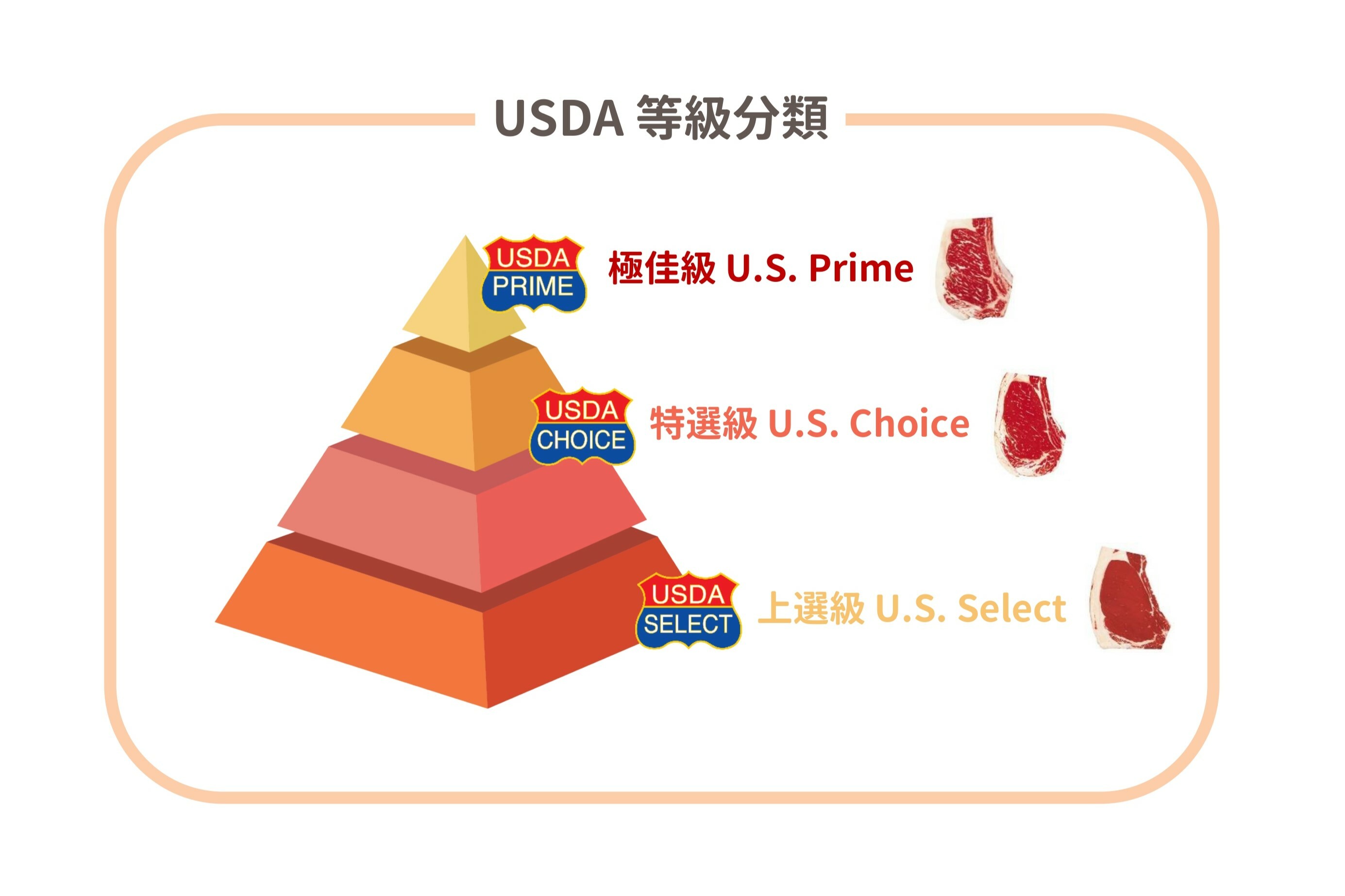 美國USDA依牛隻的油花分布和年齡分為8個等級,Prime是選用年齡 8 到 42 個月的年輕牛隻,整個美國只有「2.9%」的牛可以被選為Prime極佳級,數量非常稀少,一般都是賣給高檔餐廳或飯店使用