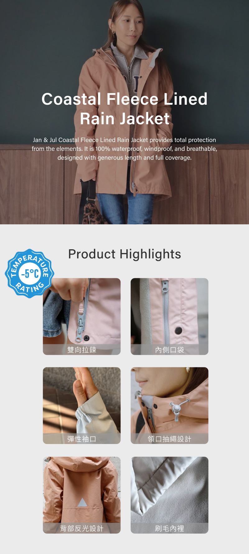 Jan & Jul 大人防風防水刷毛外套 Coast長版-沙漠陶土