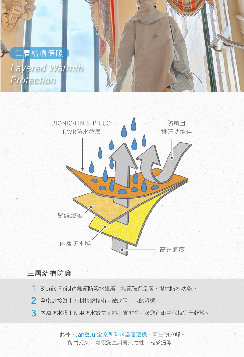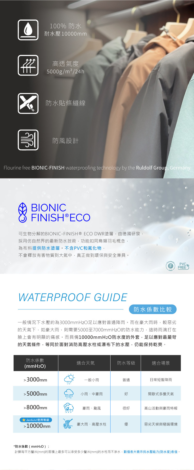 ✔ 德國科技:專利透氣技術 5000g/m2/24h,防水係數 10,000mm