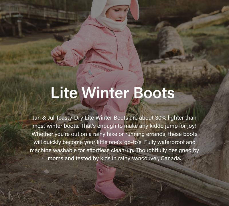 Jan & Jul Toasty-Dry Lite 冬季靴 比一般冬靴輕約 30%,讓孩子開心地跳起來!