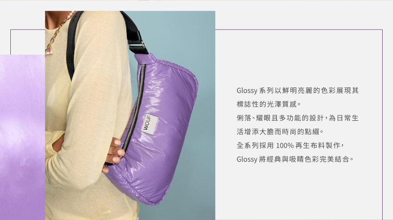 Glossy 系列以亮眼色彩展現其標誌性的光澤質感,俐落、耀眼且百搭,為日常增添大膽風格。