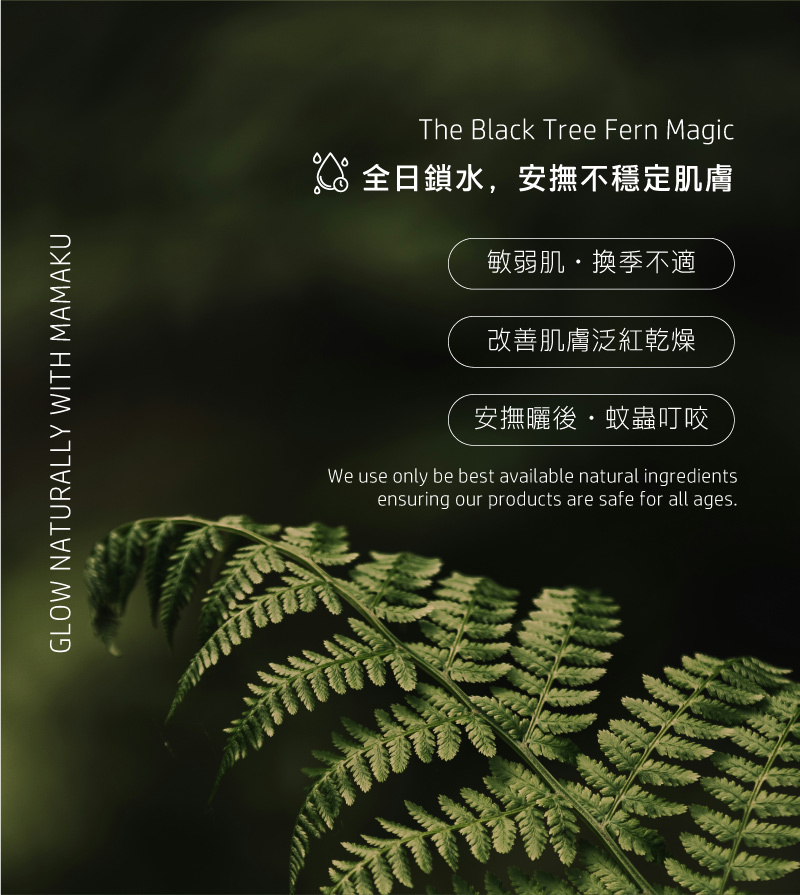 成分:水、Mamaku黑樹蕨萃取物、甘油、黃原膠、苯甲醇、脫氫乙酸、檸檬酸