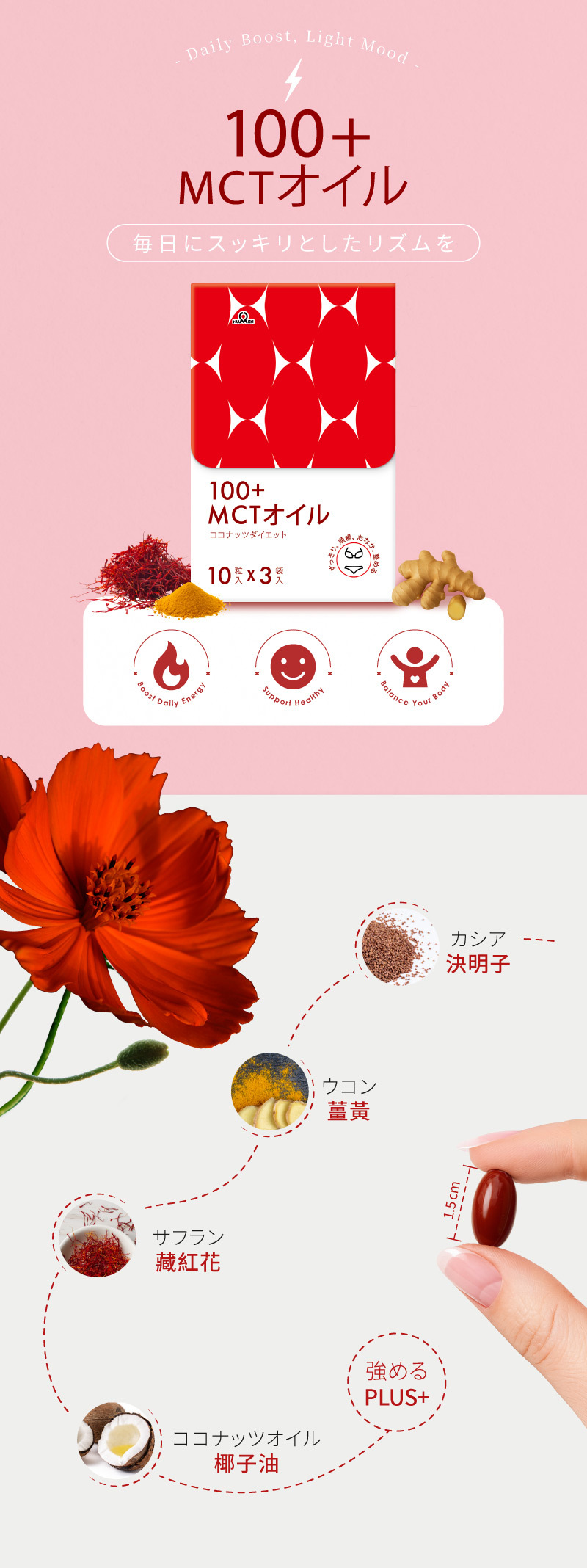 MCT中鏈椰子油萃取物、CLA共軛亞麻油酸、綠茶萃取物、決明子萃取物、仙人掌萃取物、薑黃素萃取物、菊苣纖維